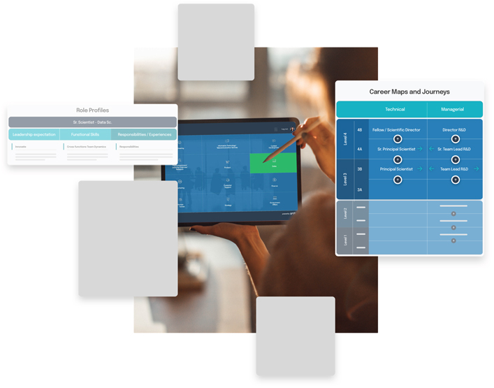 A transparent and easy to understand mapping of all roles within an organization as well as illustrative career journeys that show typical lateral moves across roles or functions